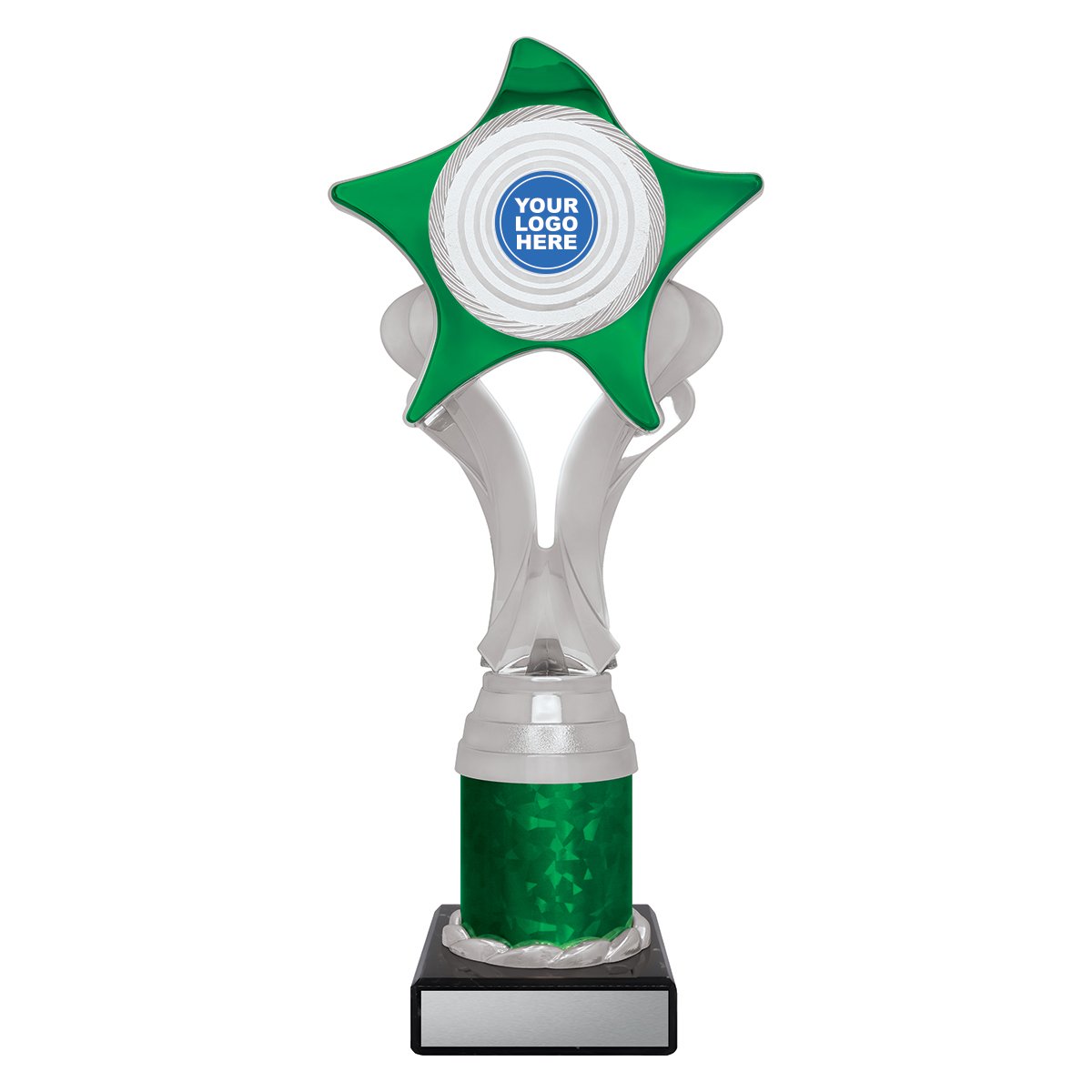 Radiant Athena holder series of trophies perfectly shows off your custom logo over a number of sizes. Choose colour combination to best suit your awards.