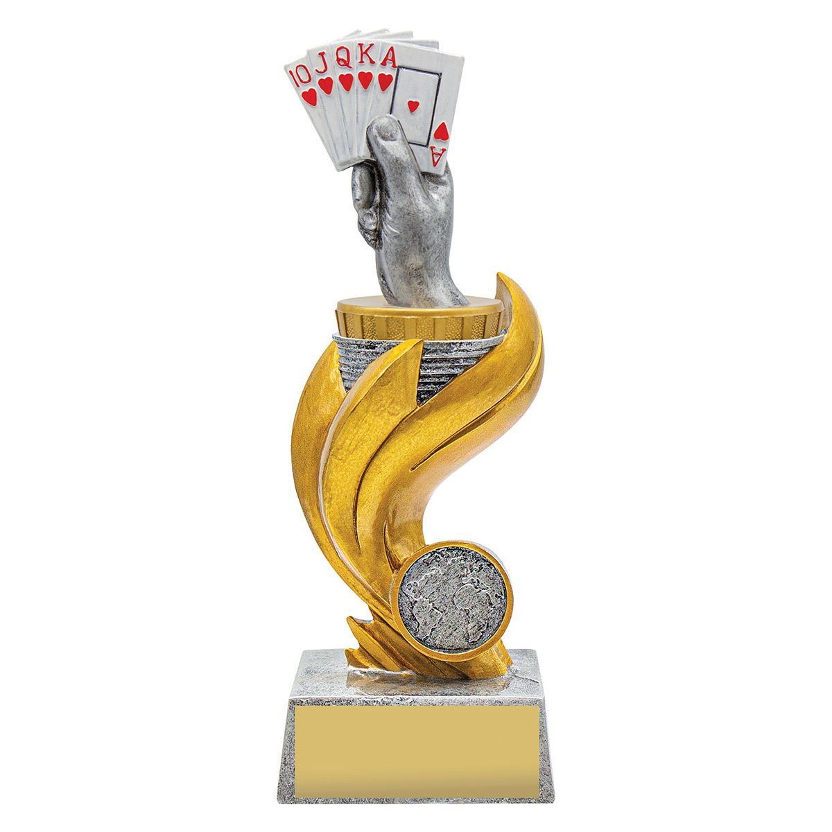 Flame trophy series is a popular and reliable choice featuring a dynamic design that celebrates your sport or activity. Cards Flame Trophy series highlights that perfect hand. Cards trophies available in 3 convenient sizes with the option of customisation.