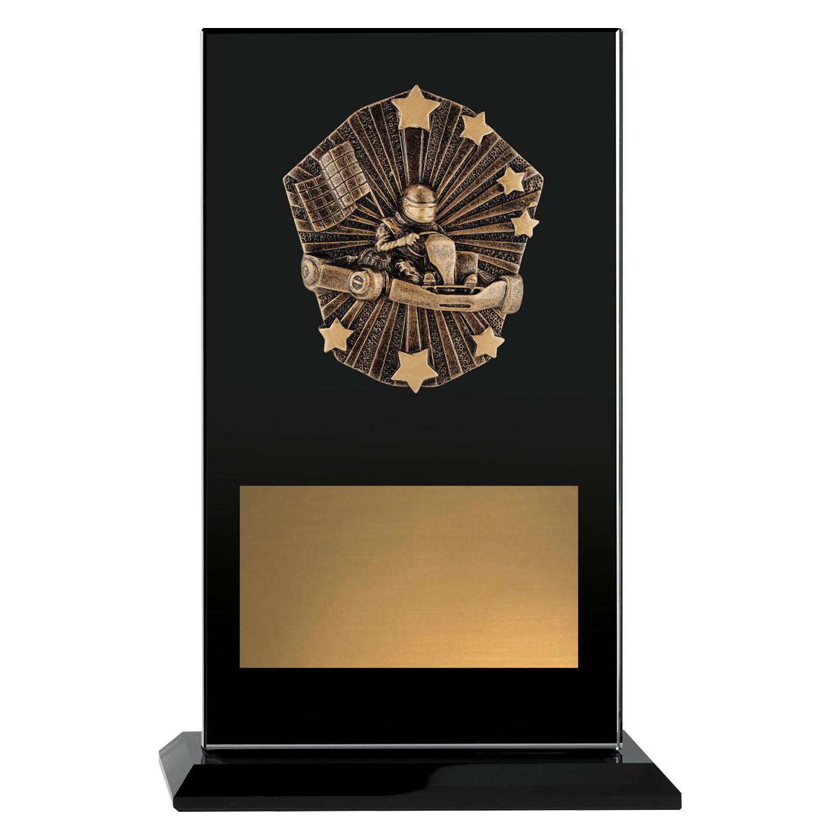 The Cosmos Glass Awards provides a prestige trophy option to the successful Cosmos range. Classic black glass helps show off the superbly crafted theme for your sport or activity. Space for engraving plate or laser engraved text.