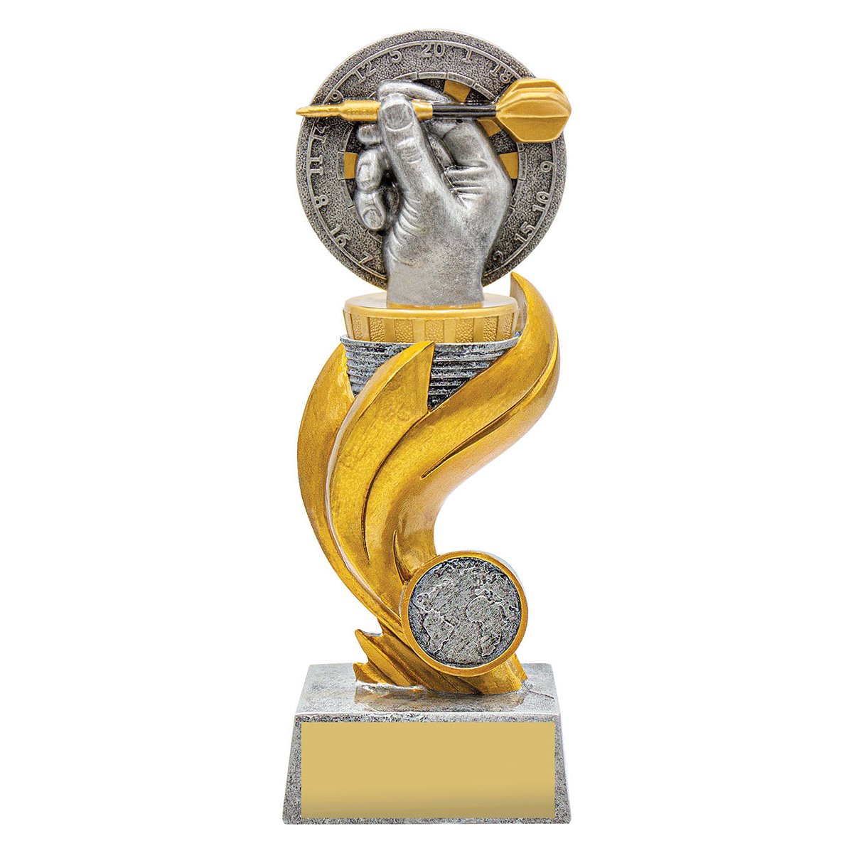 Flame trophy series is a popular and reliable choice featuring a dynamic design that celebrates your sport or activity. Darts Flame Trophy series highlights a classic darts hand pose. Darts trophies available in 3 convenient sizes with the option of customisation.