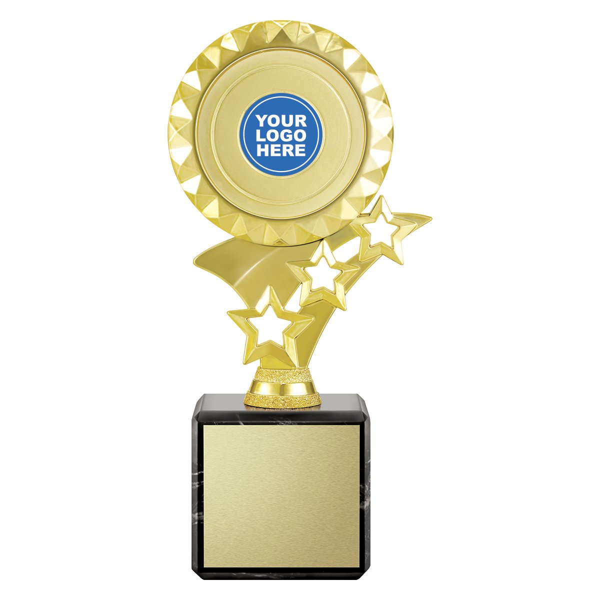 Diamond Star 3D holder available in gold or silver with space for your custom logo over various sizes.