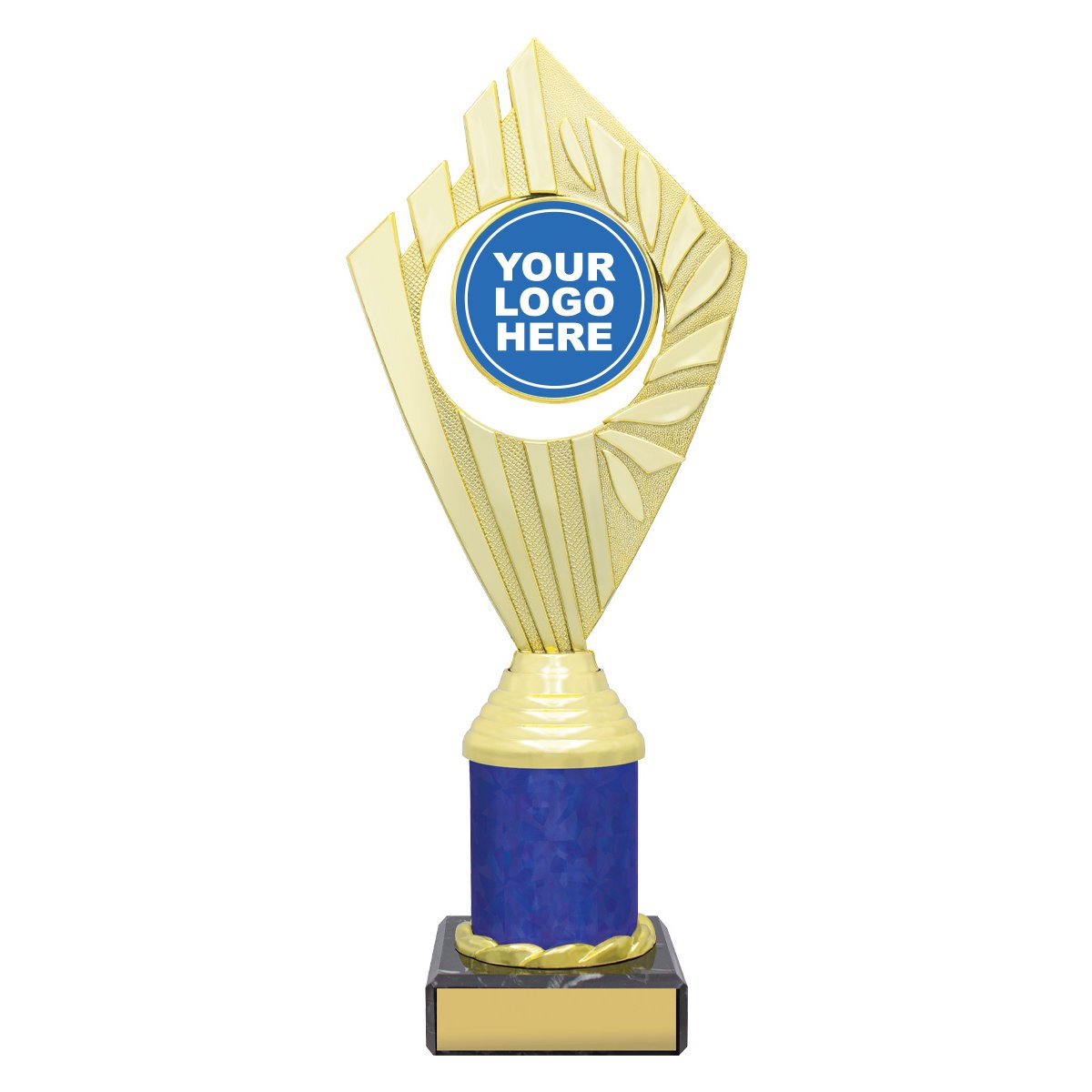 Flyer Series of trophies feature beautifully designed holders on columns of different colours – option to showcase 25 or 50mm logo or insert.