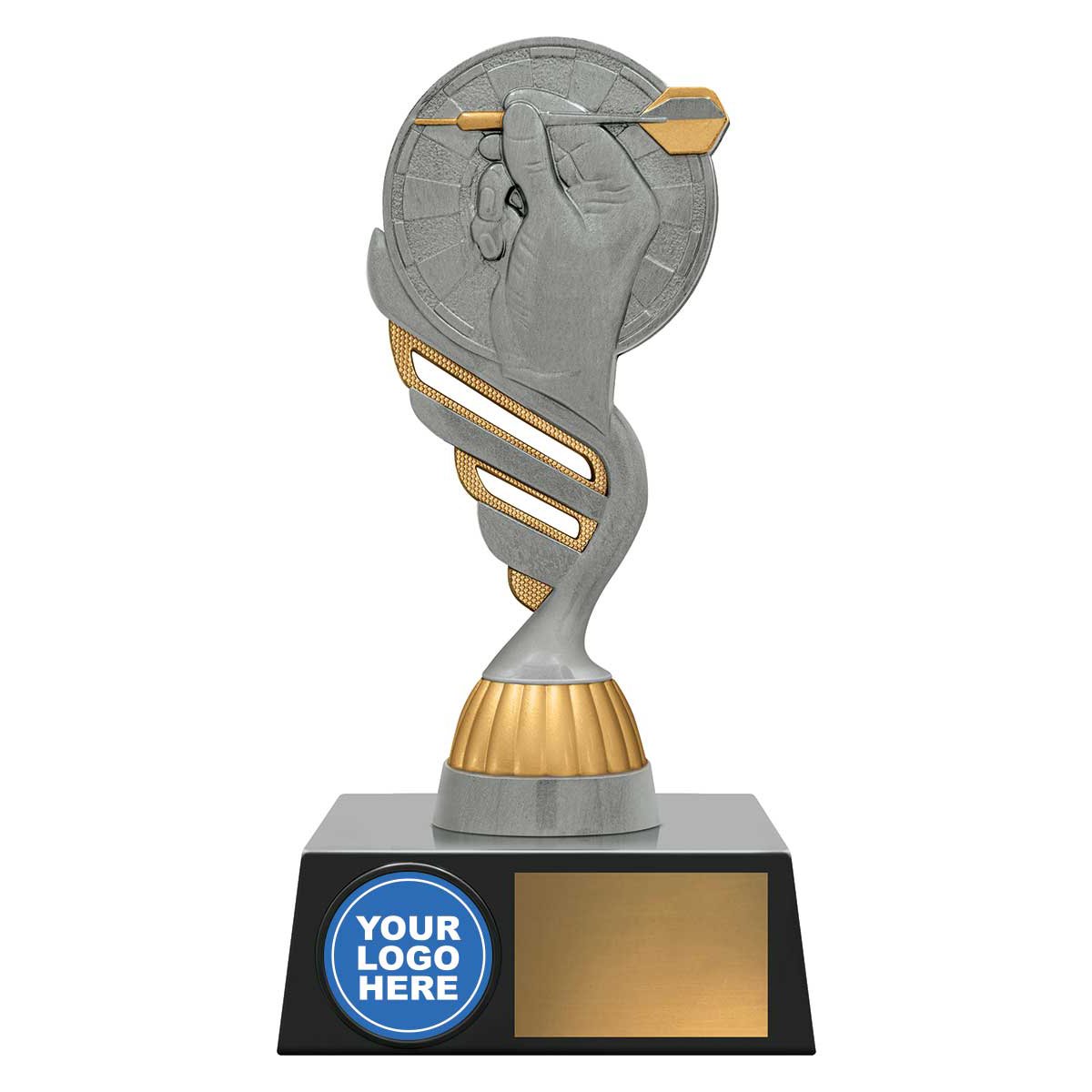 Reliable trophies for your club or team – stylish top finished in classic antique silver and gold colours with prime space for your logo if required.