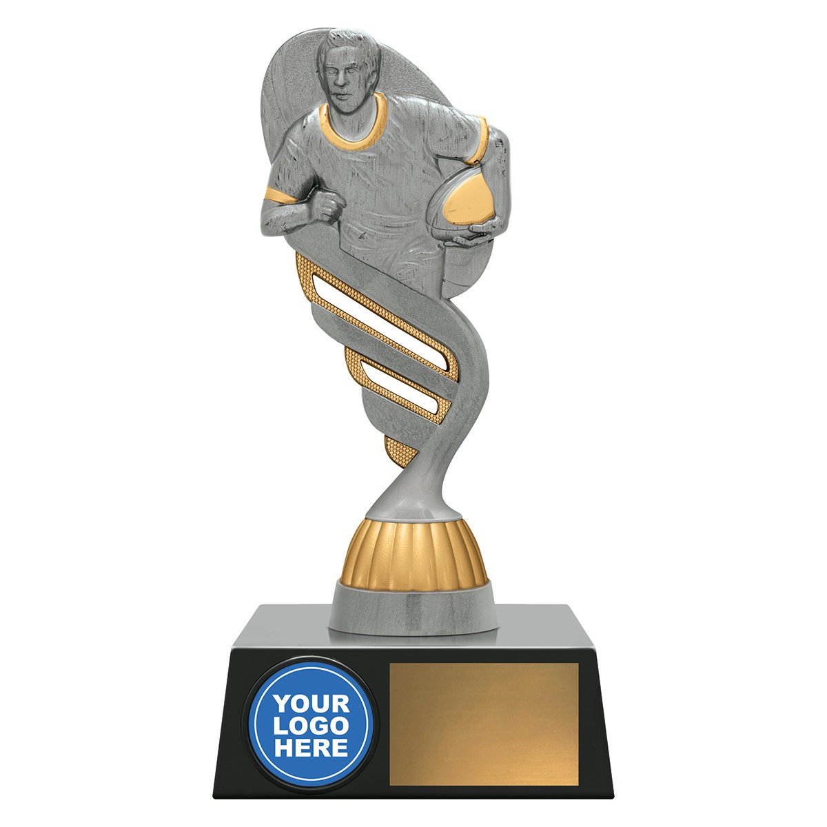 Reliable trophies for your club or team – stylish top finished in classic antique silver and gold colours with prime space for your logo if required.
