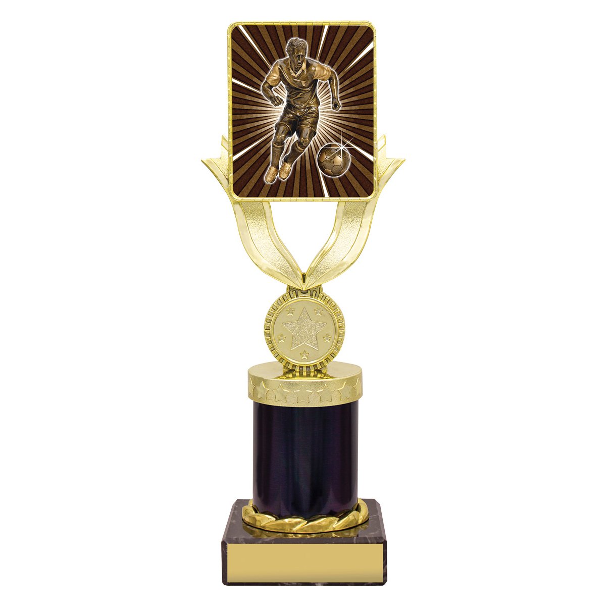 Brilliant football trophies in the Lynx Bold range features gold trophy holder showcasing the insert for your sport or activity. Range of sizes available.