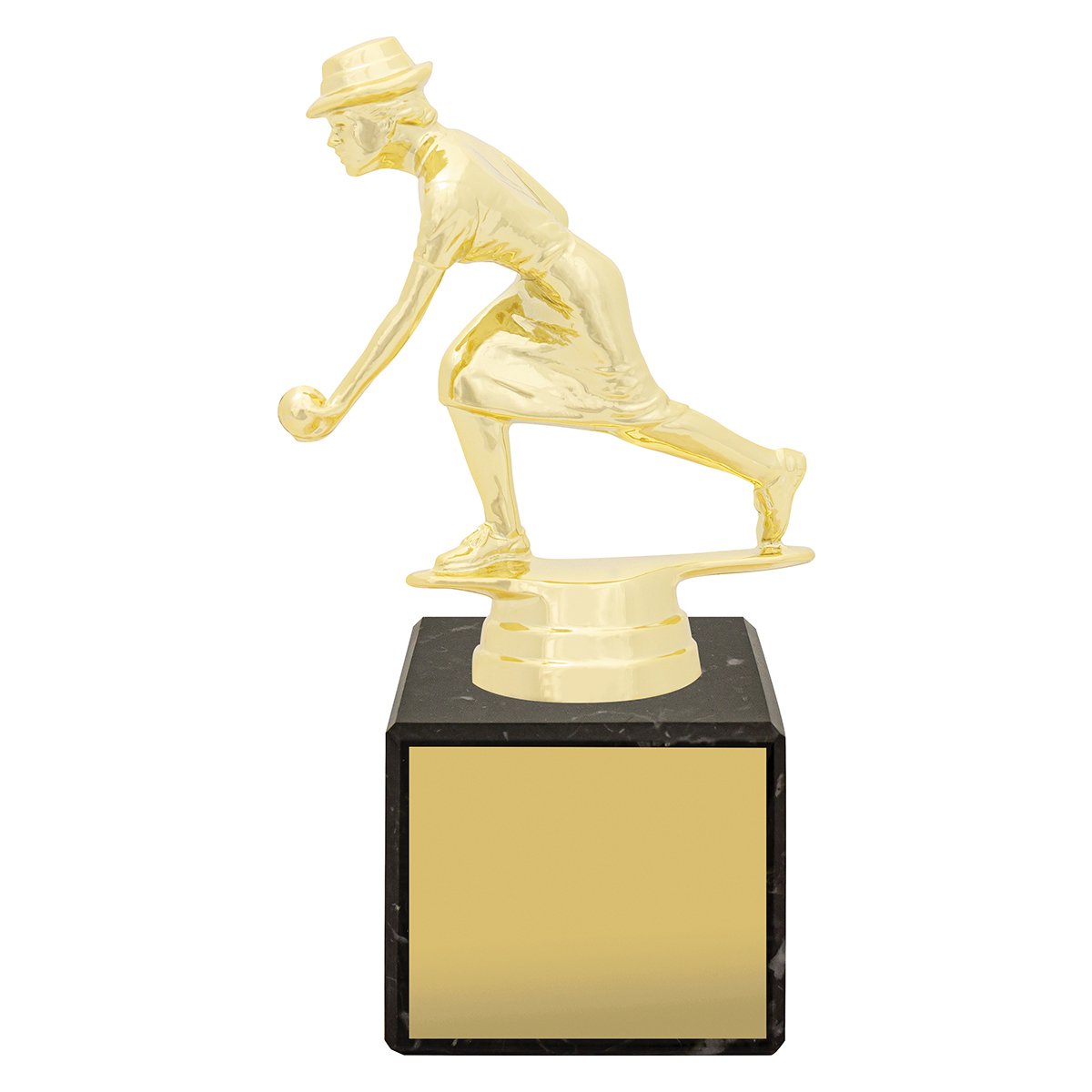 Simple but effective series of trophies for your presentation – bright gold top representing your activity on series of prestige European marble. Ample space for personalisation.