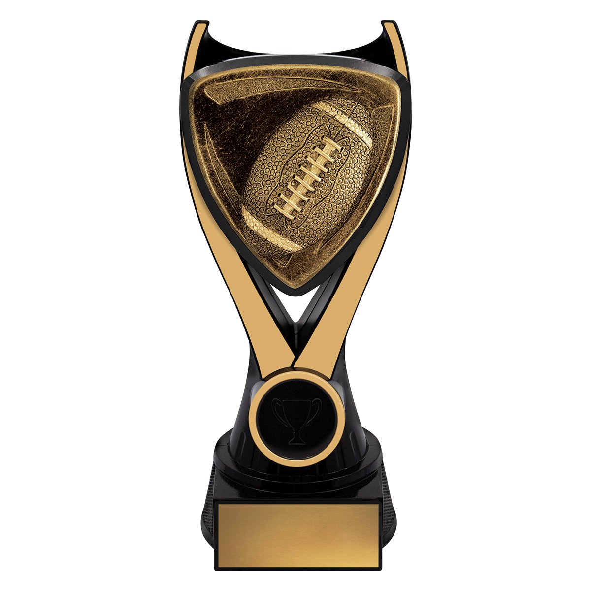 Nova series of trophies present a unique black & gold colour combination with a bold 3D type design to really celebrate the sport or activity of your awards.