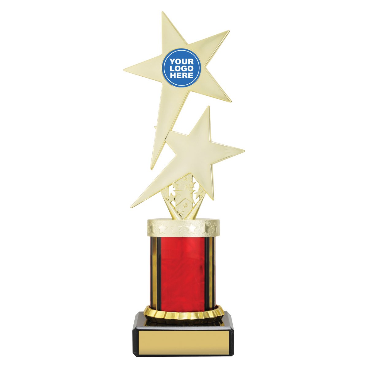 Versatile Twin Star series features dynamic star inspired top on bright Dazzle columns – choose colour to suit your order. Show off your logo or insert in style.