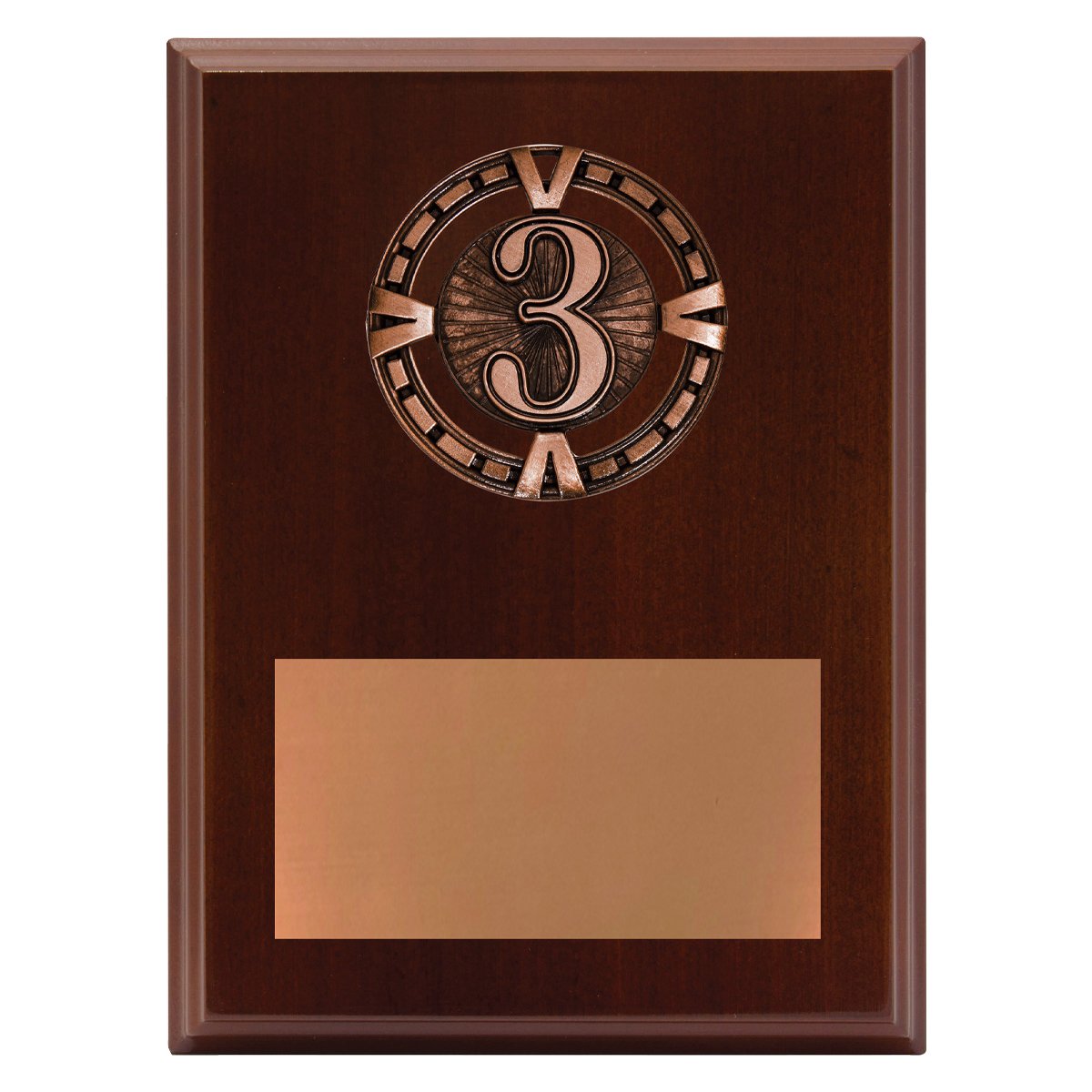Popular walnut plaque features brilliant Varsity medals create a convenient yet premium award.
