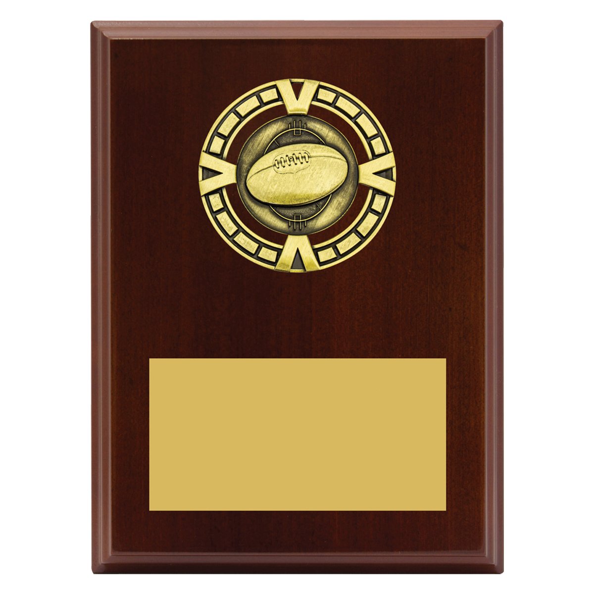 Popular walnut plaque features brilliant Varsity medals create a convenient yet premium award. Great for top performers, coaches, managers, administrators etc.