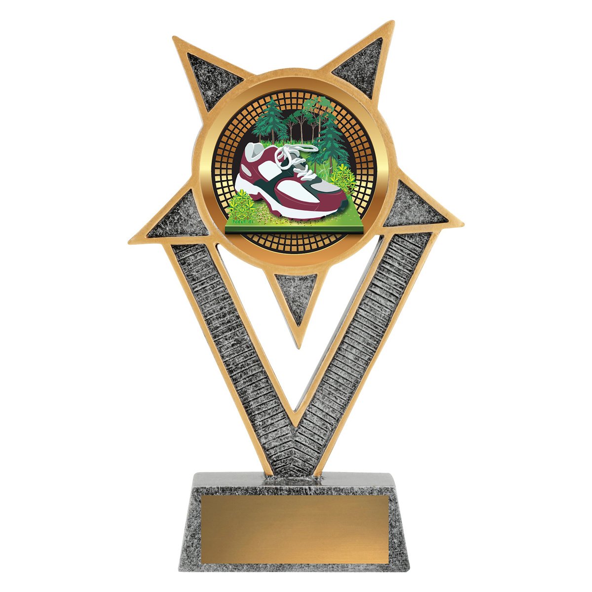 Star inspired trophy series, the Ventura offers prime position for colour insert to represent your sport.