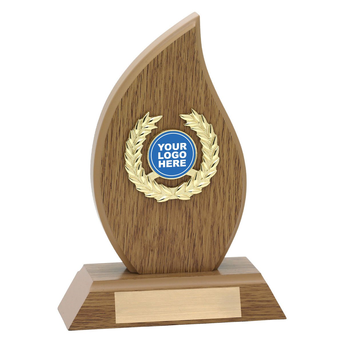 Appealing design of wood trophy perfect for an affordable award and to show off your insert.
